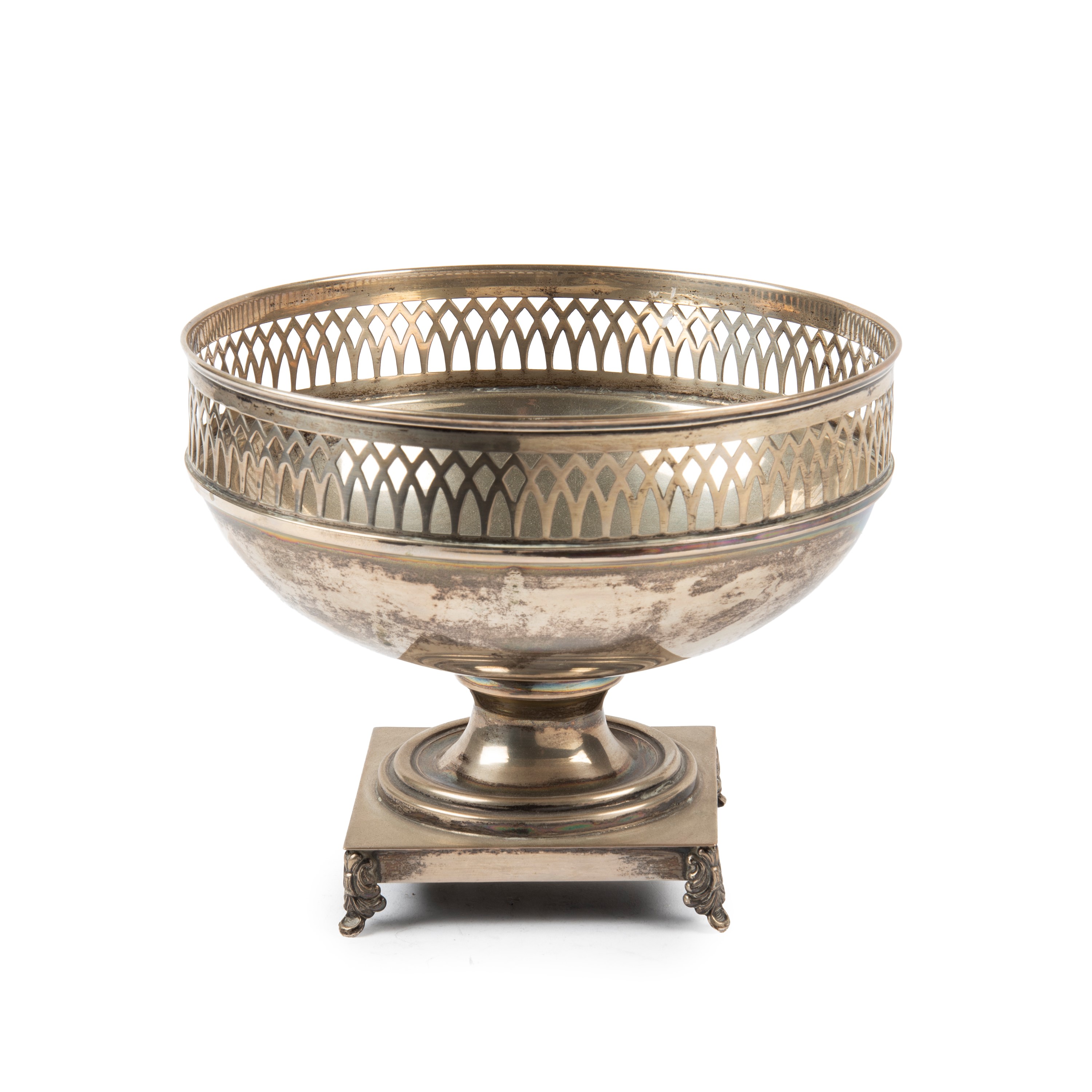 in argento, coppa con bordo traforato, base quadrata, diam. cm,19,5, alt. cm 16, g 440