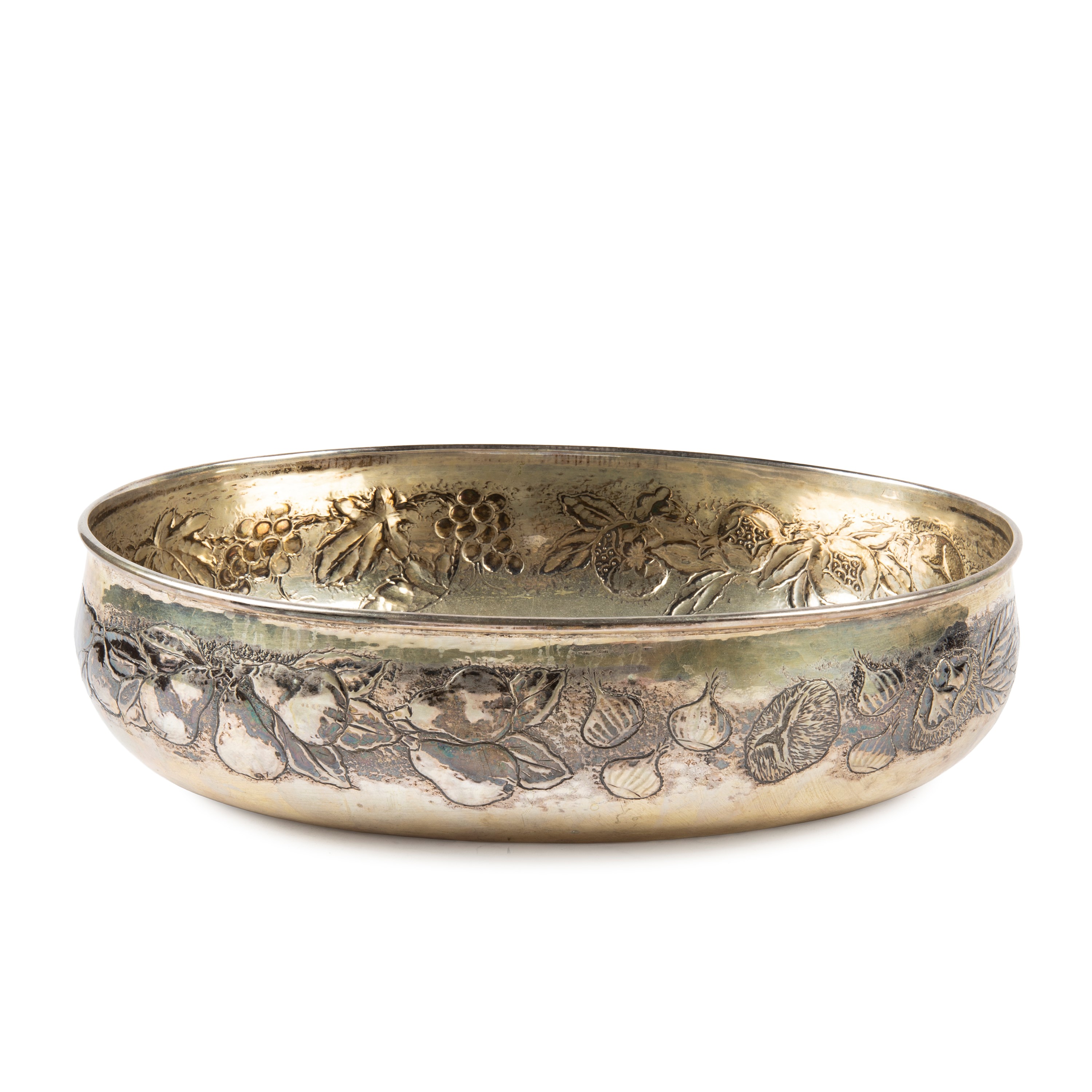 in argento sbalzato a frutti di forma ovale, cm 35X25X10, g 970