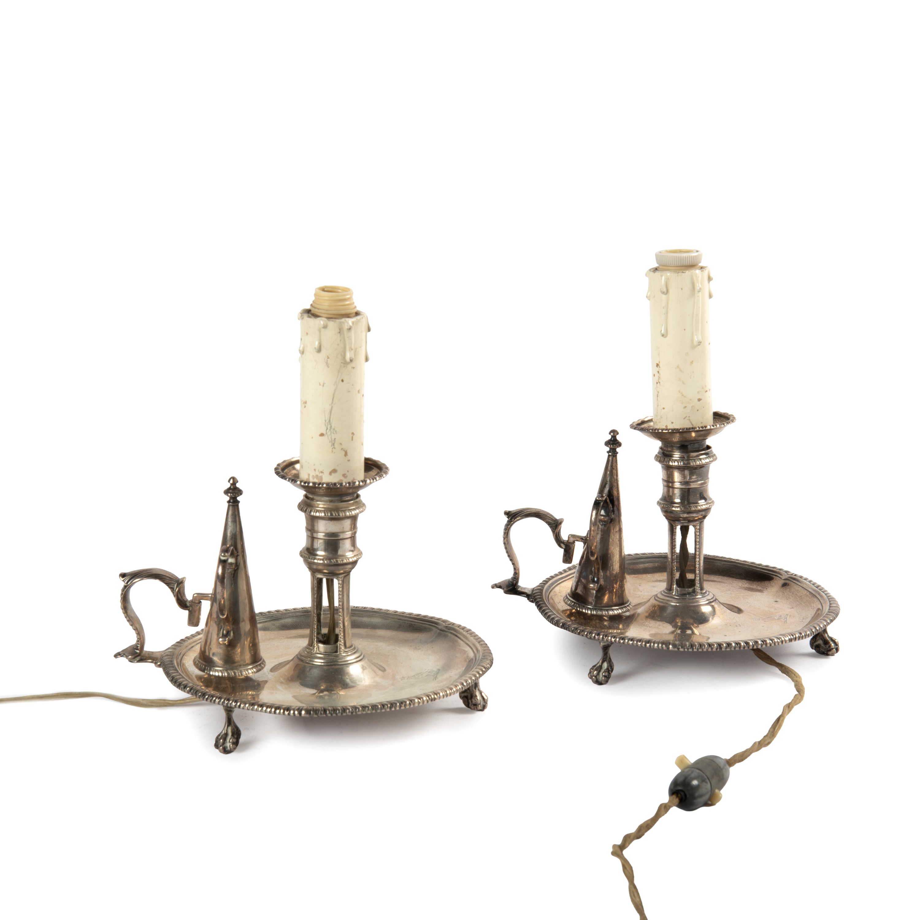 in argento, base circolare, diam. cm 15 adattate con applicazione elettrica, g 800 lordi