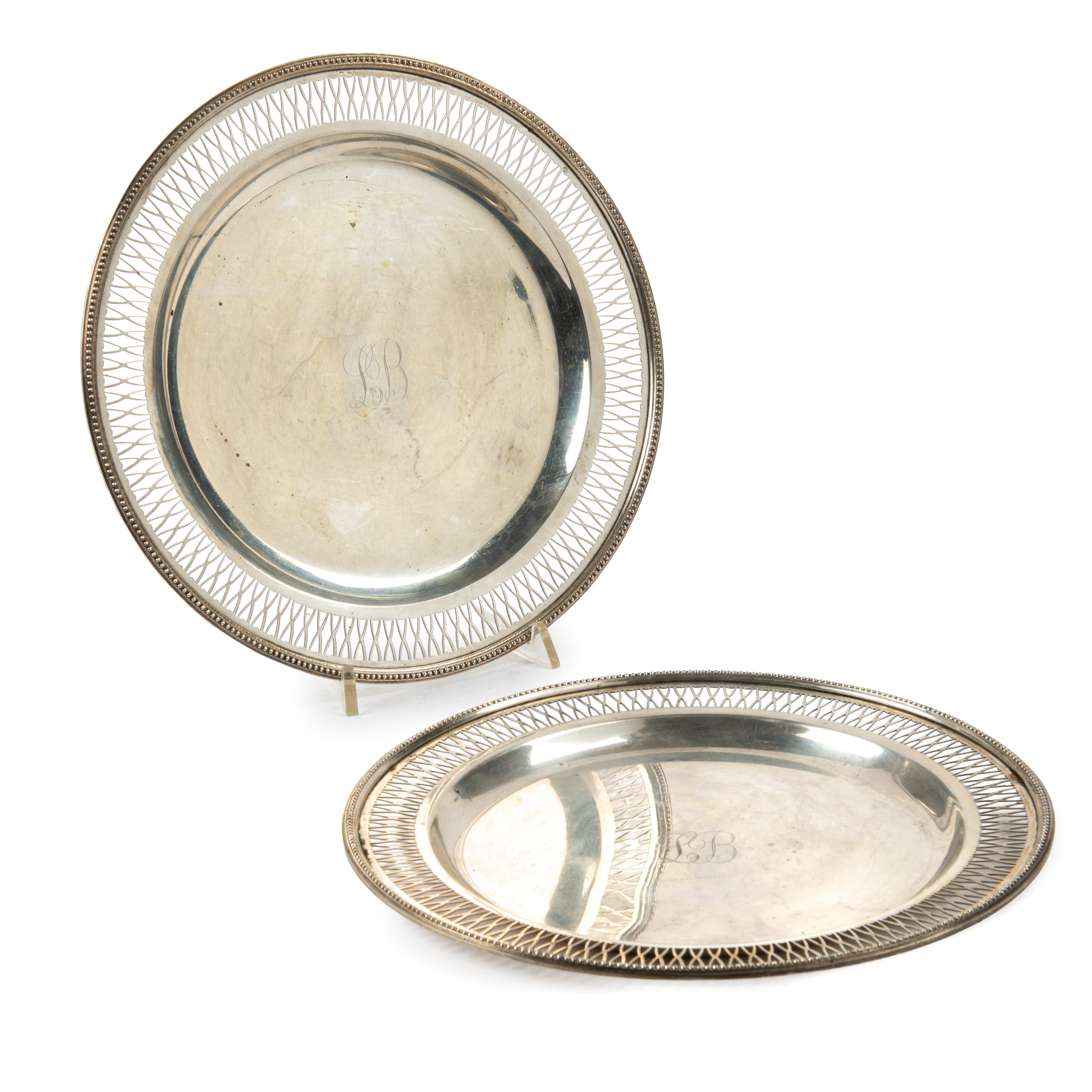 in argento, con tesa traforata, bordo perlinato, diam. cm 24,5, complessivi g 740, punzoni 800