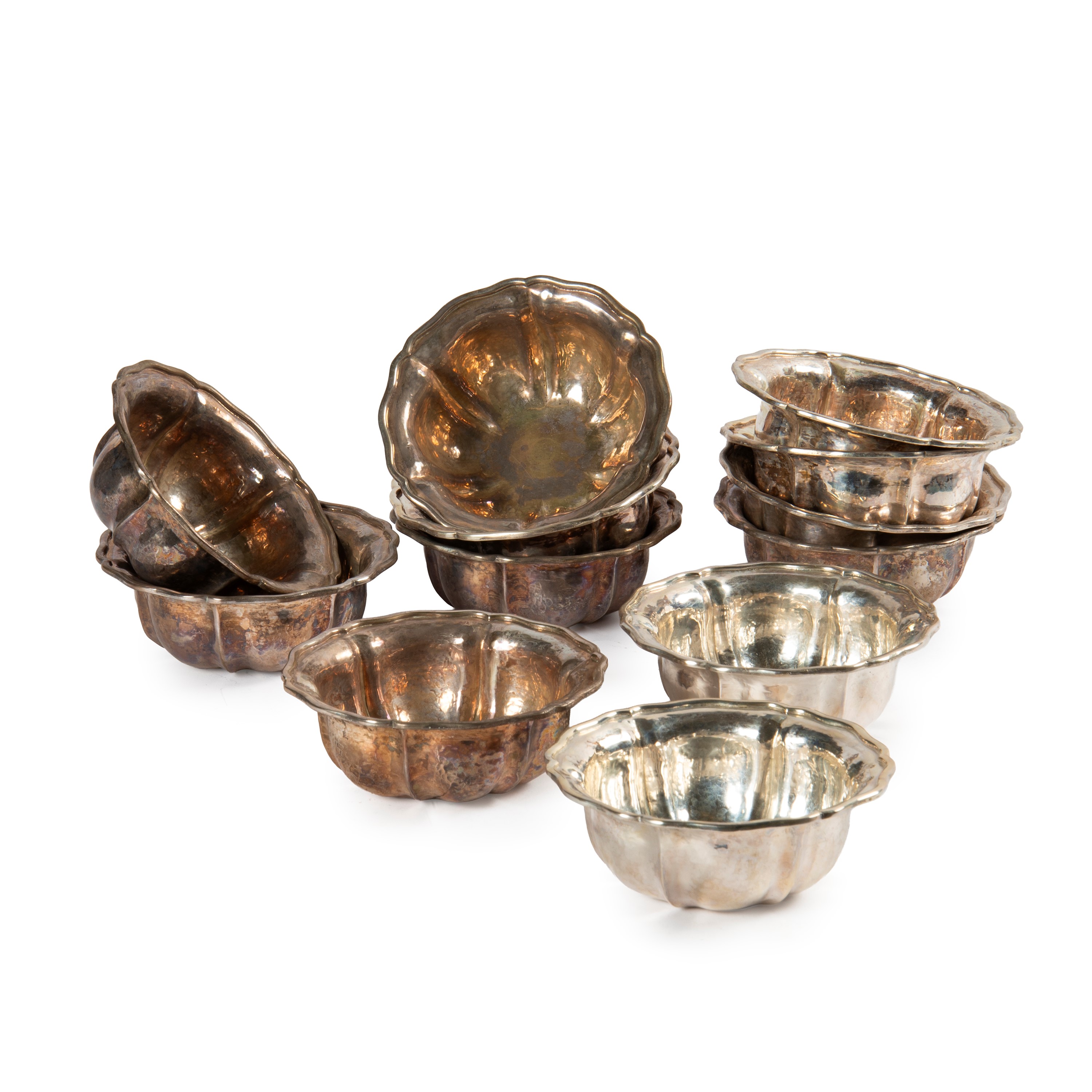 in argento, diam.cm 12, alt.cm 5, complessivi g 1340