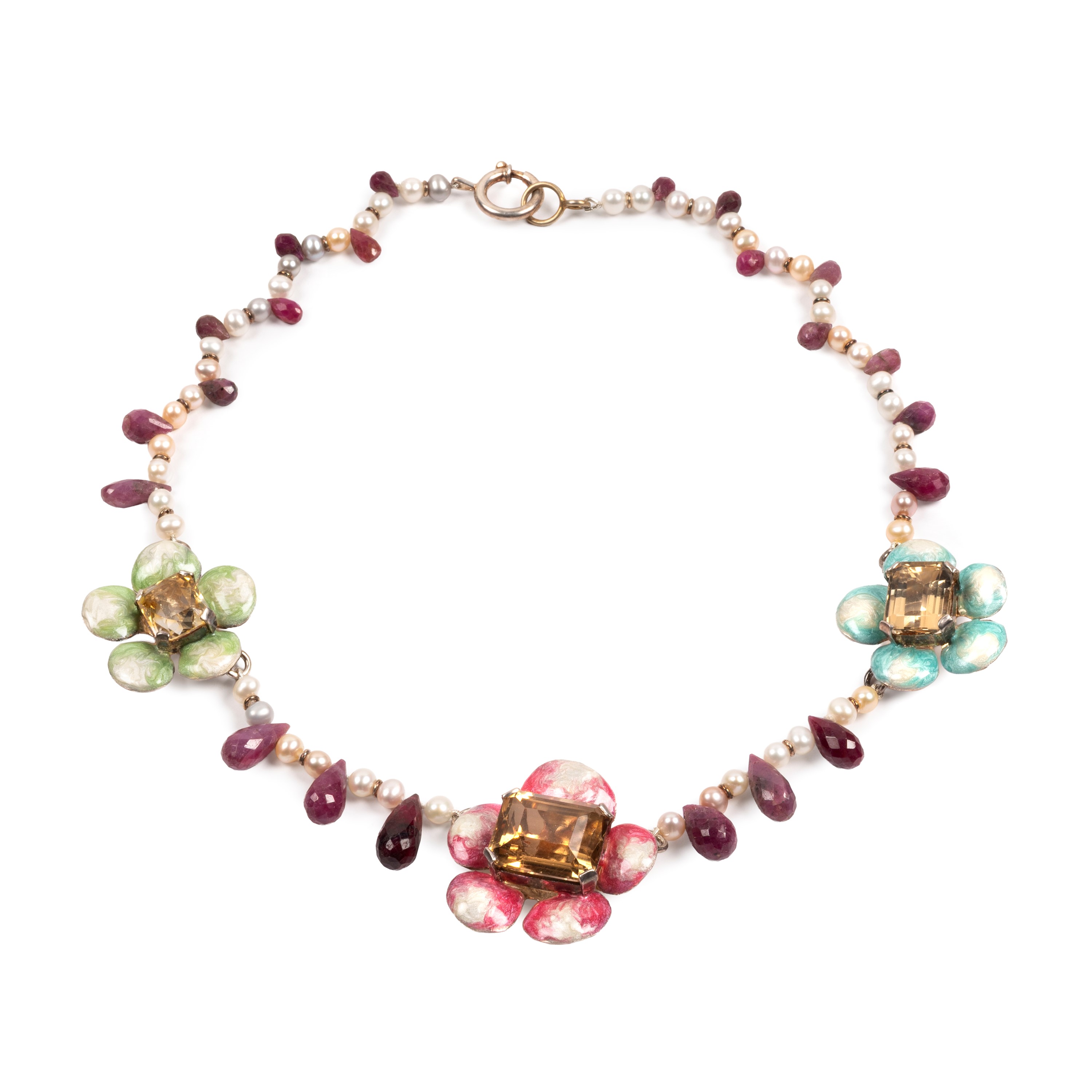 GIROCOLLO DI PERLE, QUARZI, RADICI DI RUBINO E SMERALDI