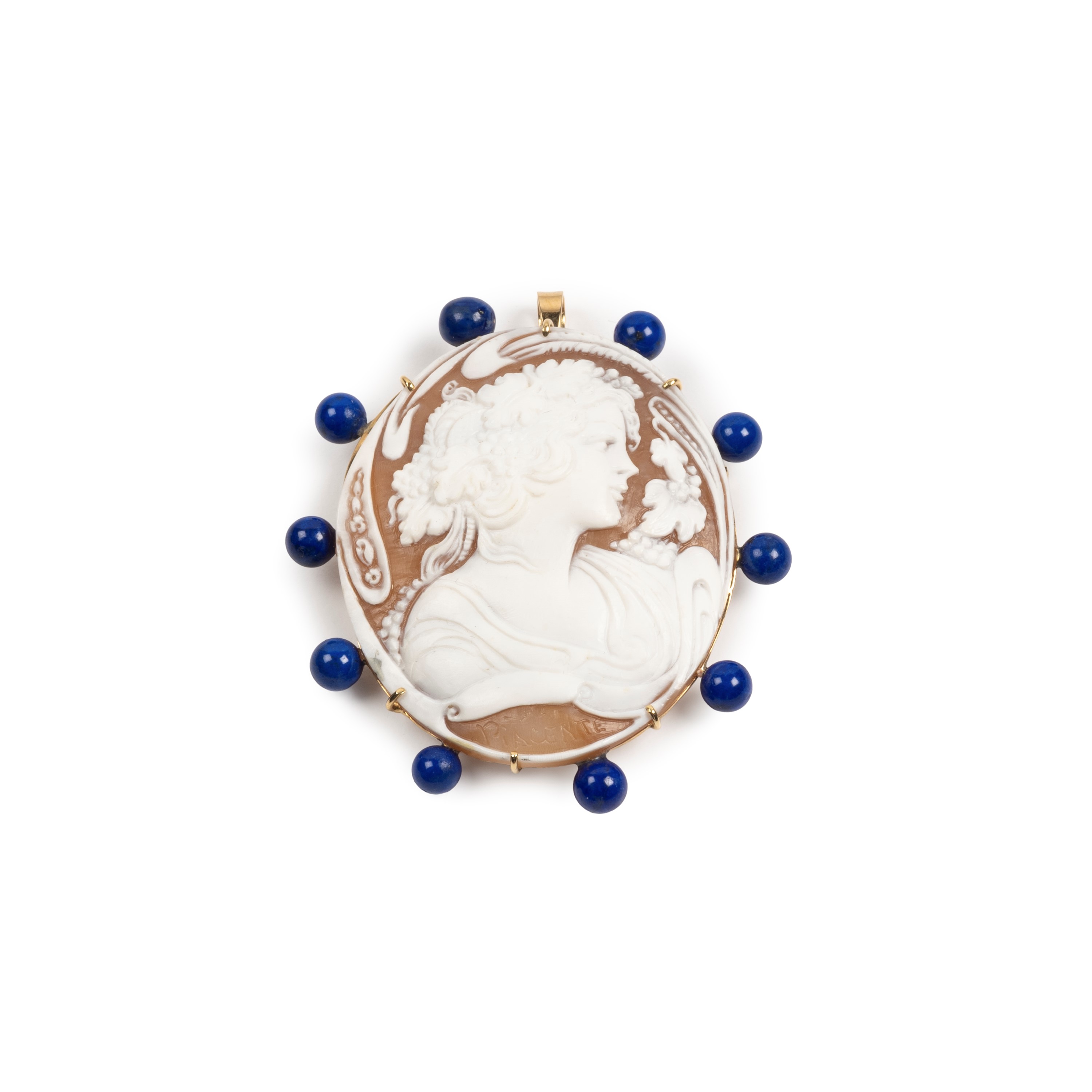 GRANDE CAMMEO, MONTATURA IN ORO GIALLO 18KT E LAPISLAZZULI