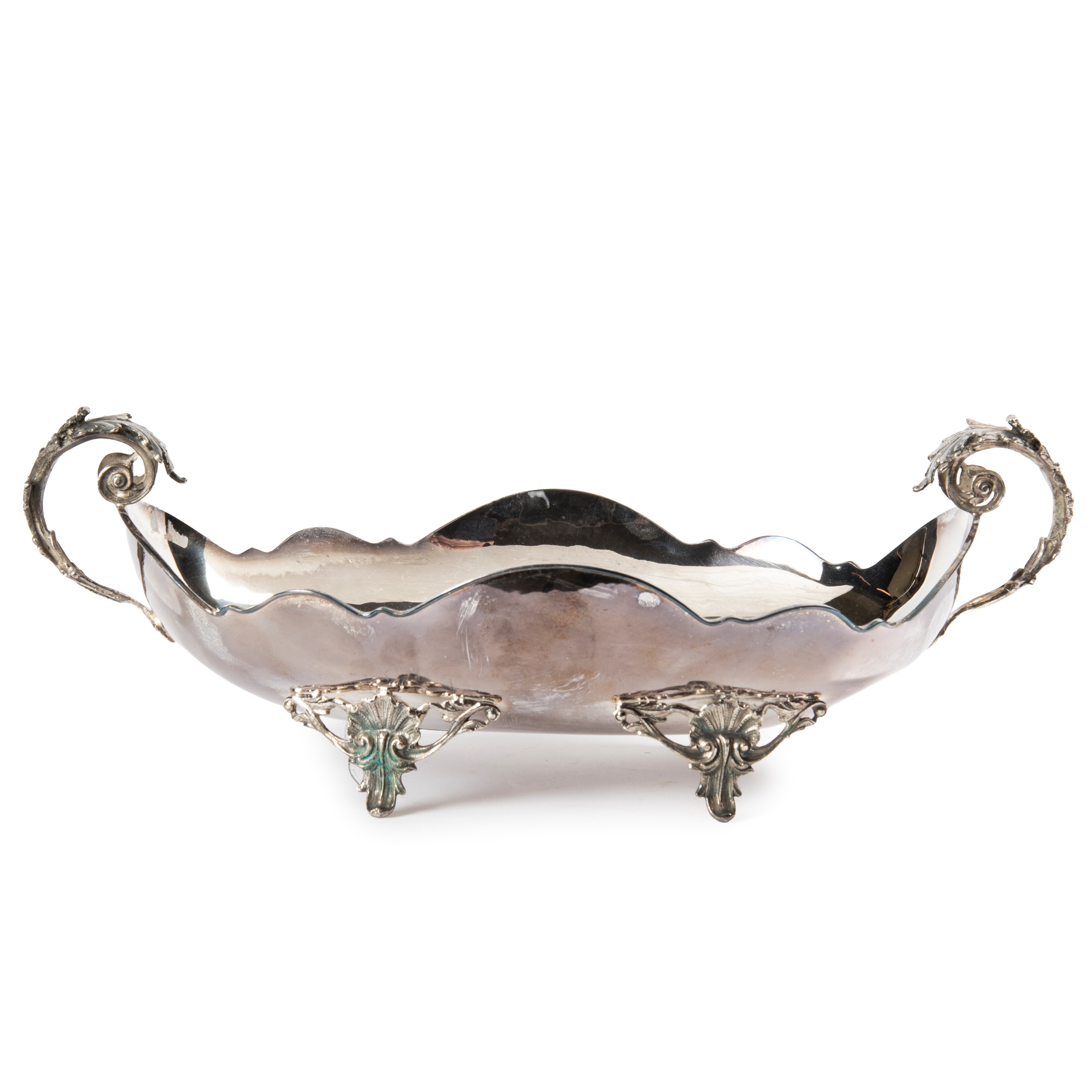 in argento, due anse cesellate a foglie, cm 41X22X10, g 865