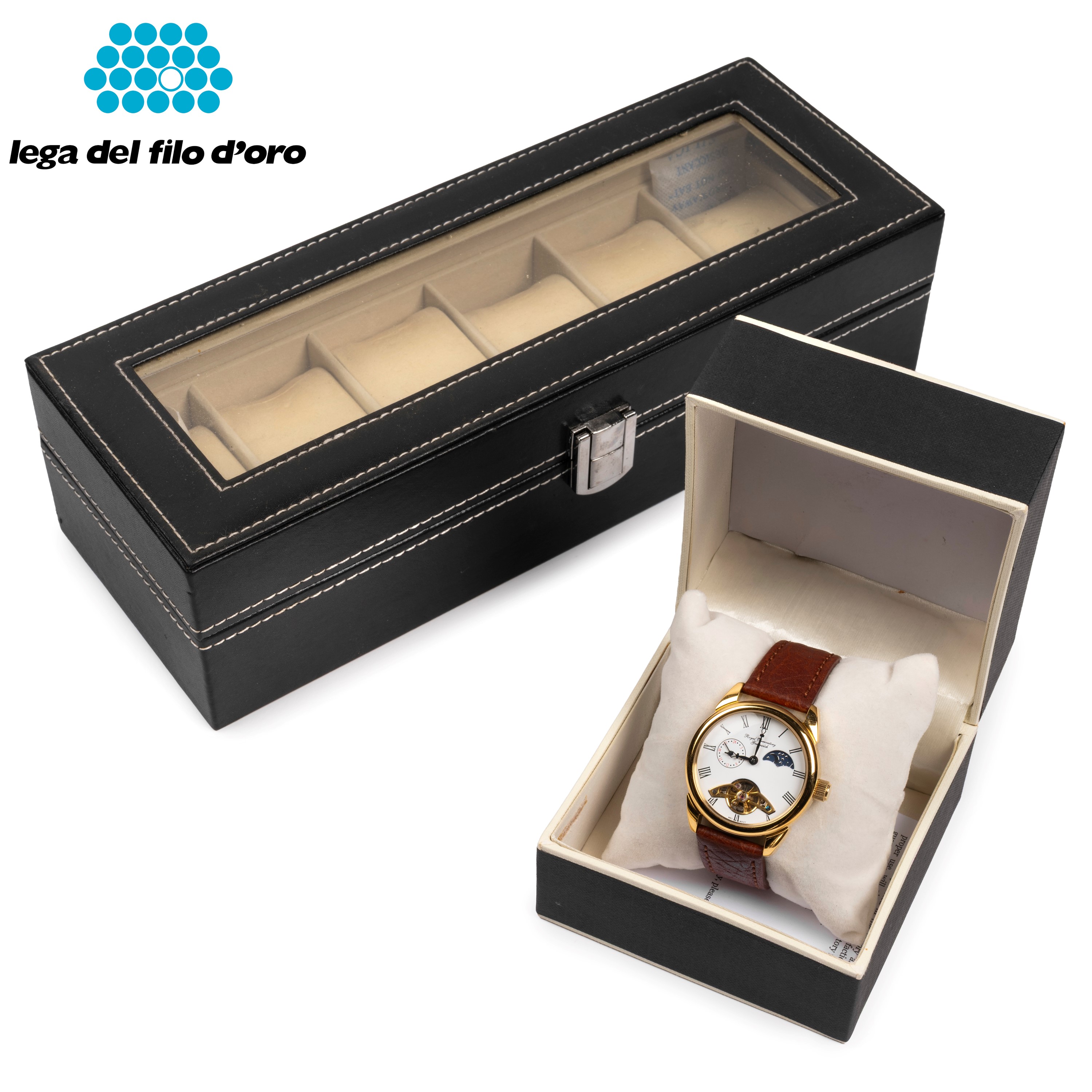 movimento meccanico, cassa in acciaio diam. mm 39, cinturino in pelle, completo di scatola