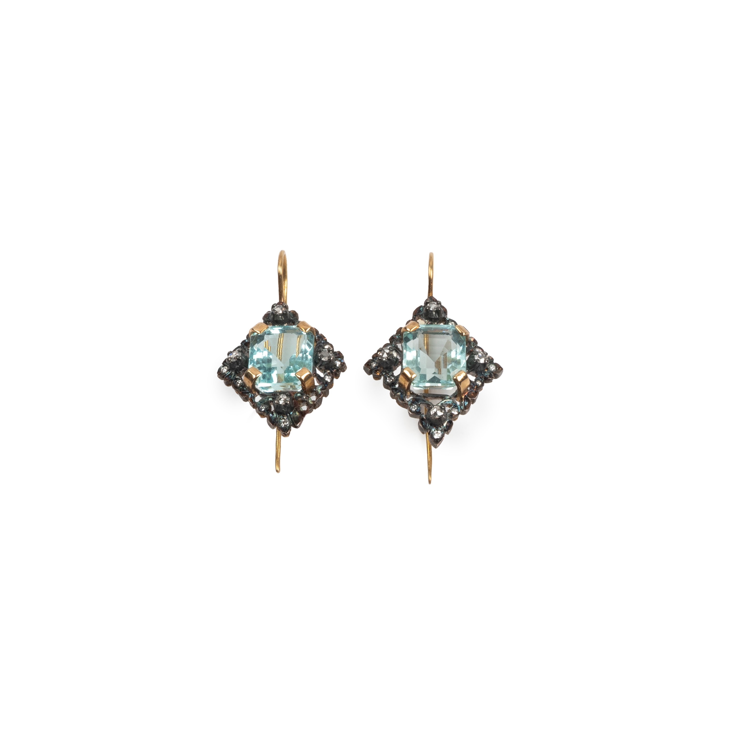 PAIO DI ORECCHINI IN ORO 18KT, ARGENTO DIAMANTI E PIETRA