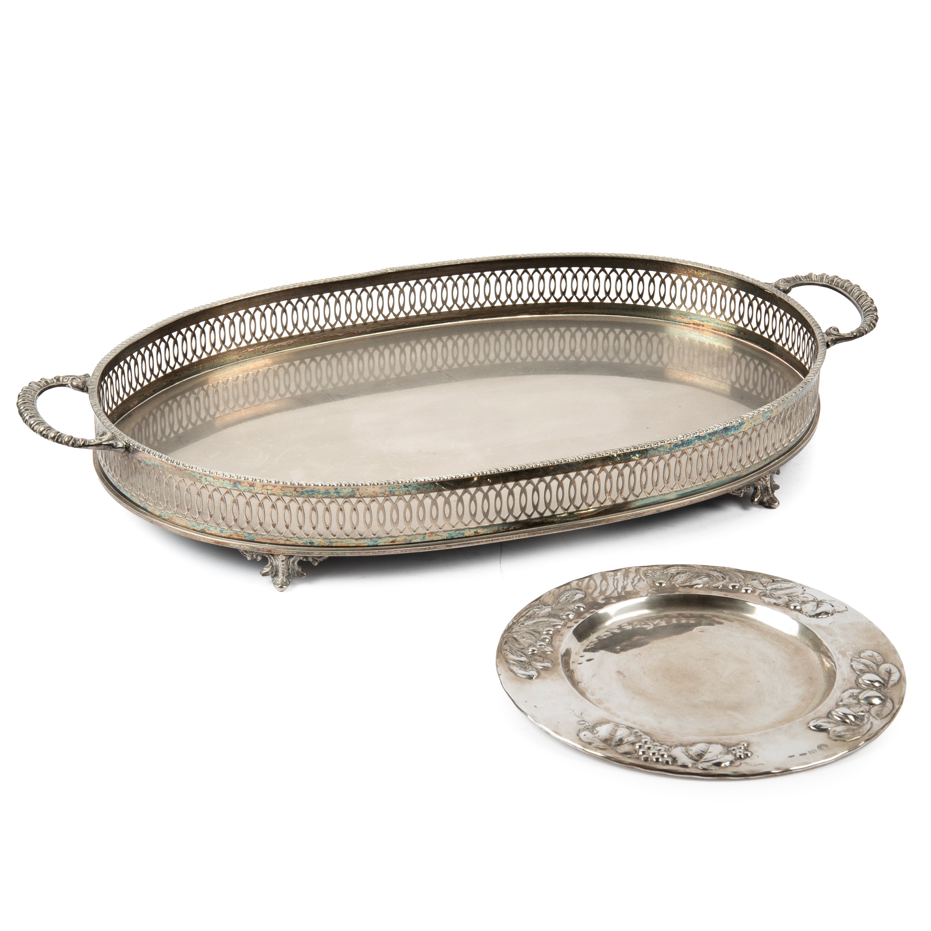 in argento sbalzato, diam. cm 22,5, g 280