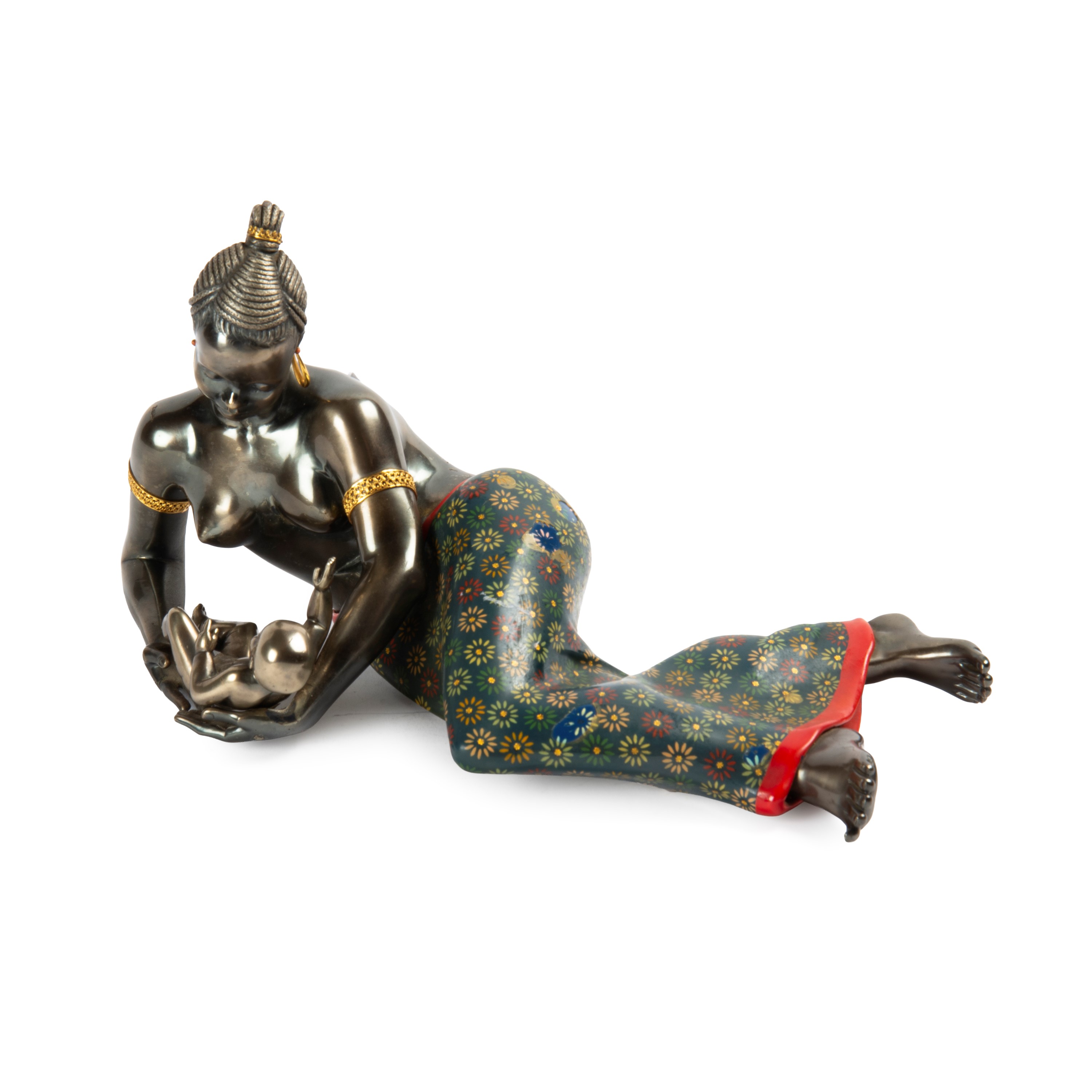 in argento sterling e smalti, raffigurante Maternità, firmata Romolo Grassi, lungh. cm 33, g 2640, cadute di smalti
