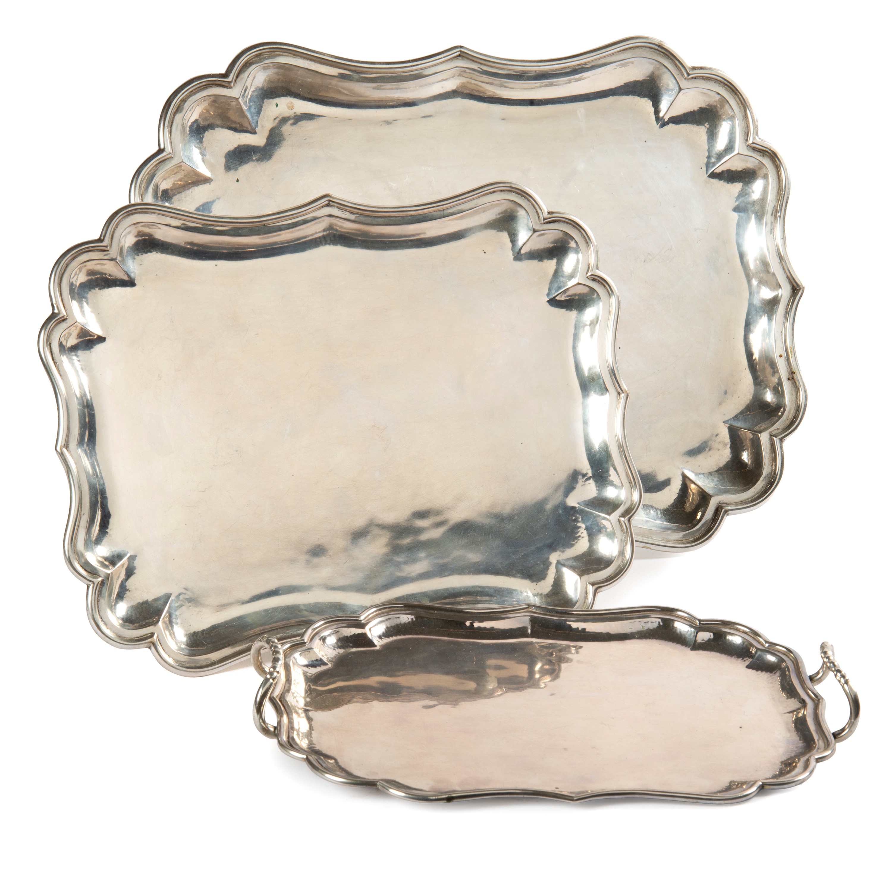 in argento di forma rettangolare,cm 39X29, cm 31X24 e cm 27X18, complessivi g 1730