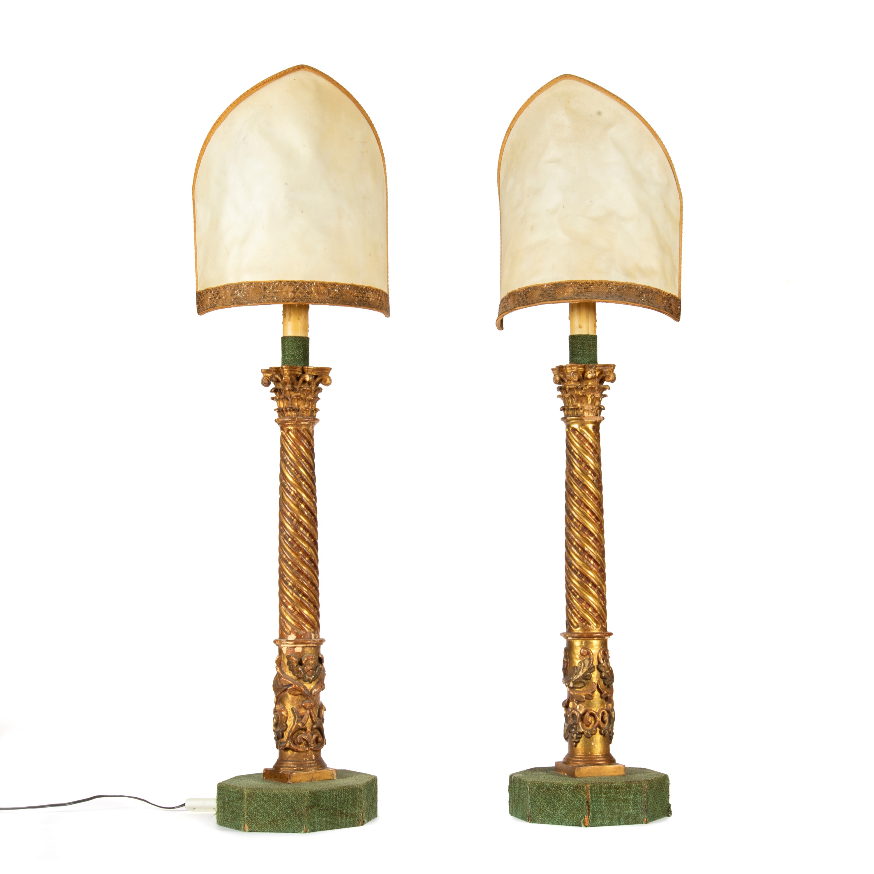 in legno intagliato e dorato, con finali a capitello, basi ottagonali di epoca posteriore, alt. cm 62