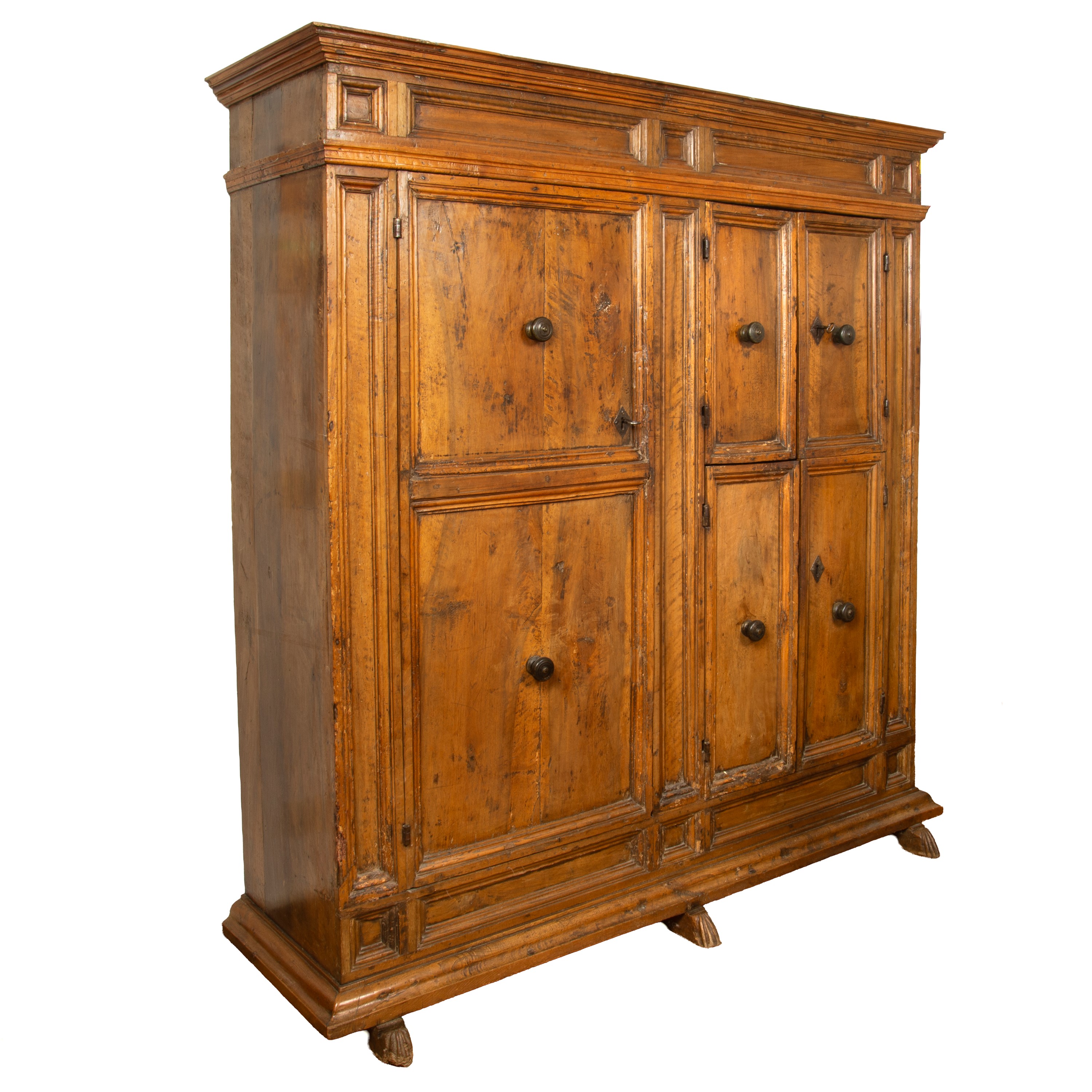 in noce, a cinque sportelli, lesene laterali, piedi felini, cm L180xP64xH193