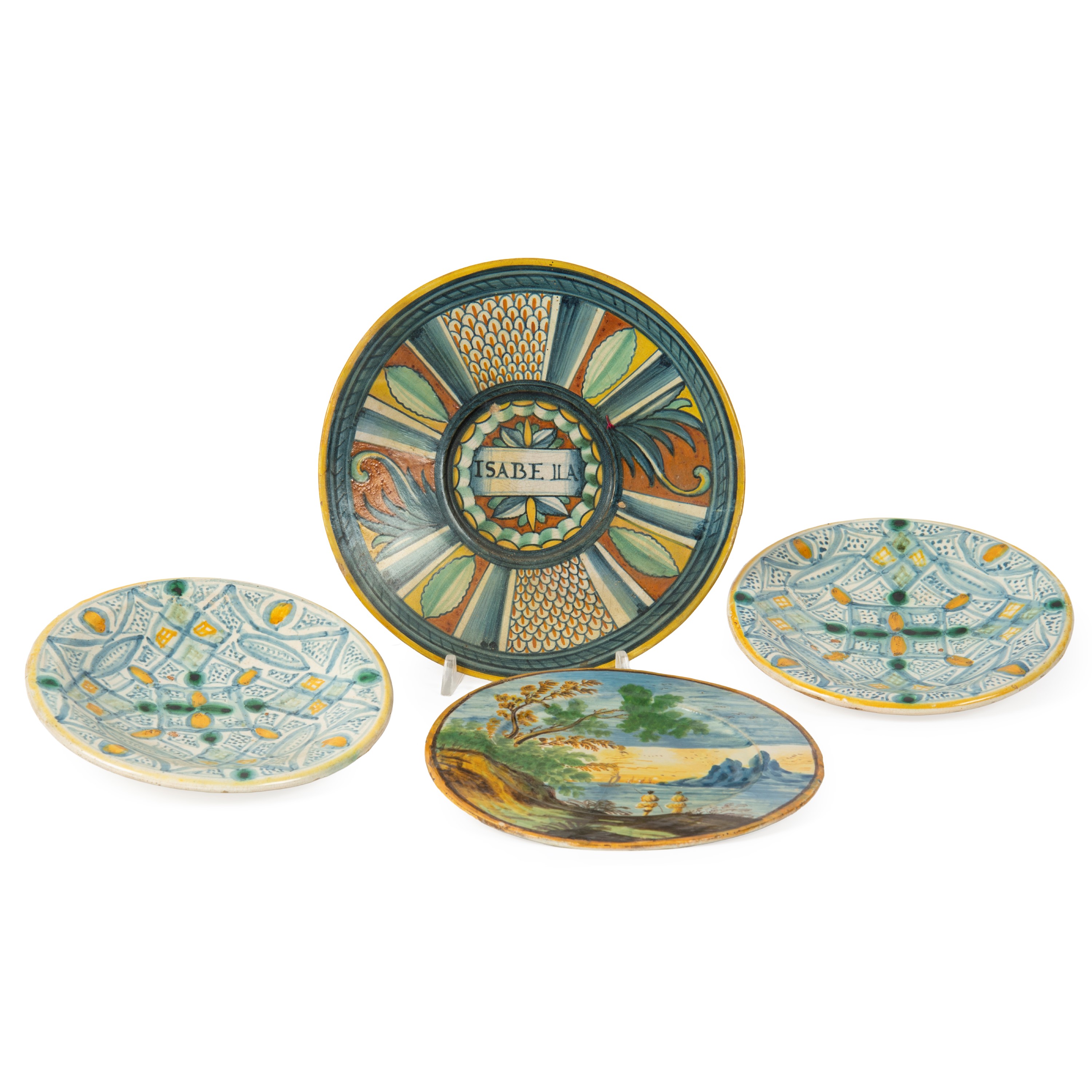 in maiolica policroma, uno con decoro a paesaggi, diam. da cm 16 a cm 20