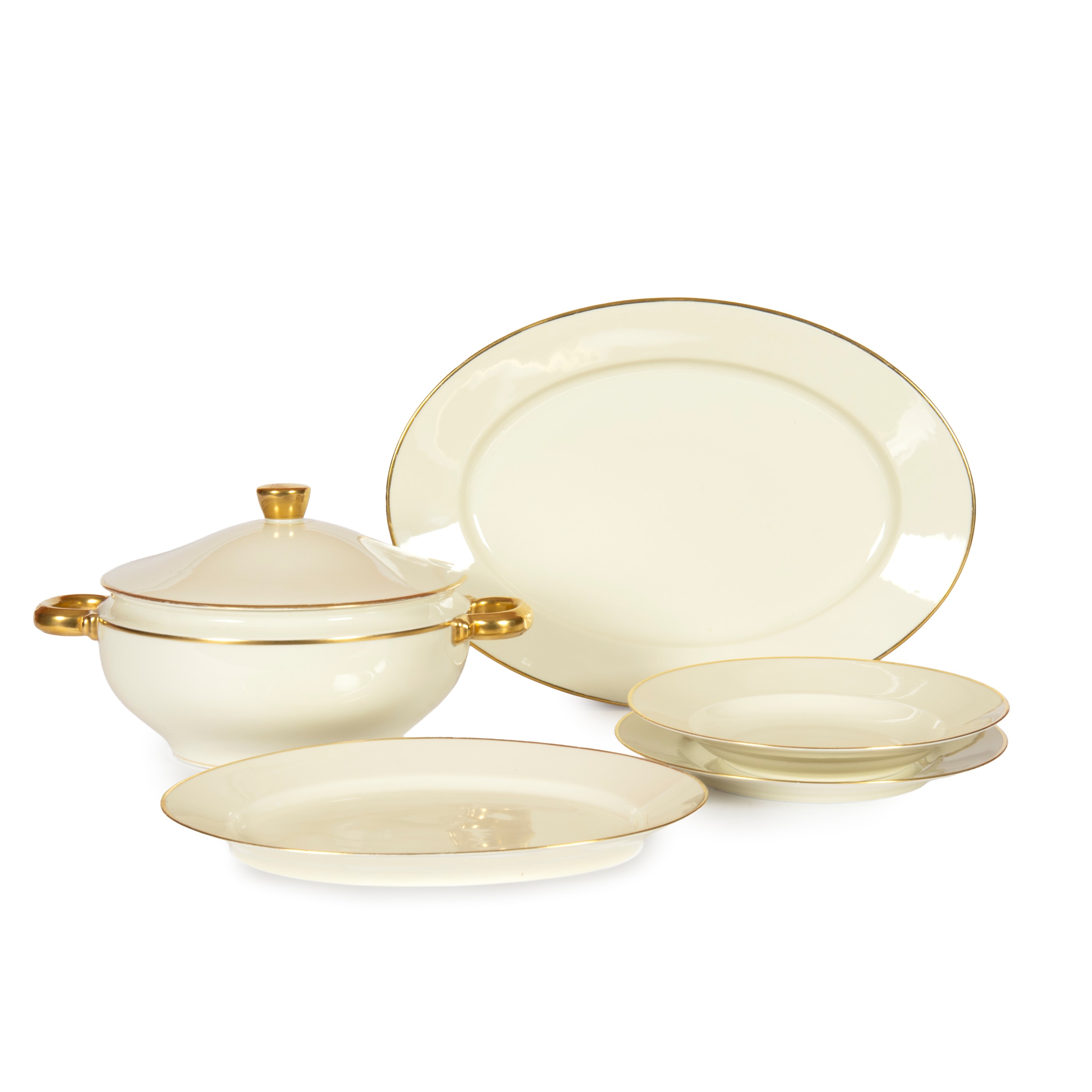 8 piatti fondi, 38 piatti piani, 10 piatti da frutta, 4 vassoi e 1 zuppiera