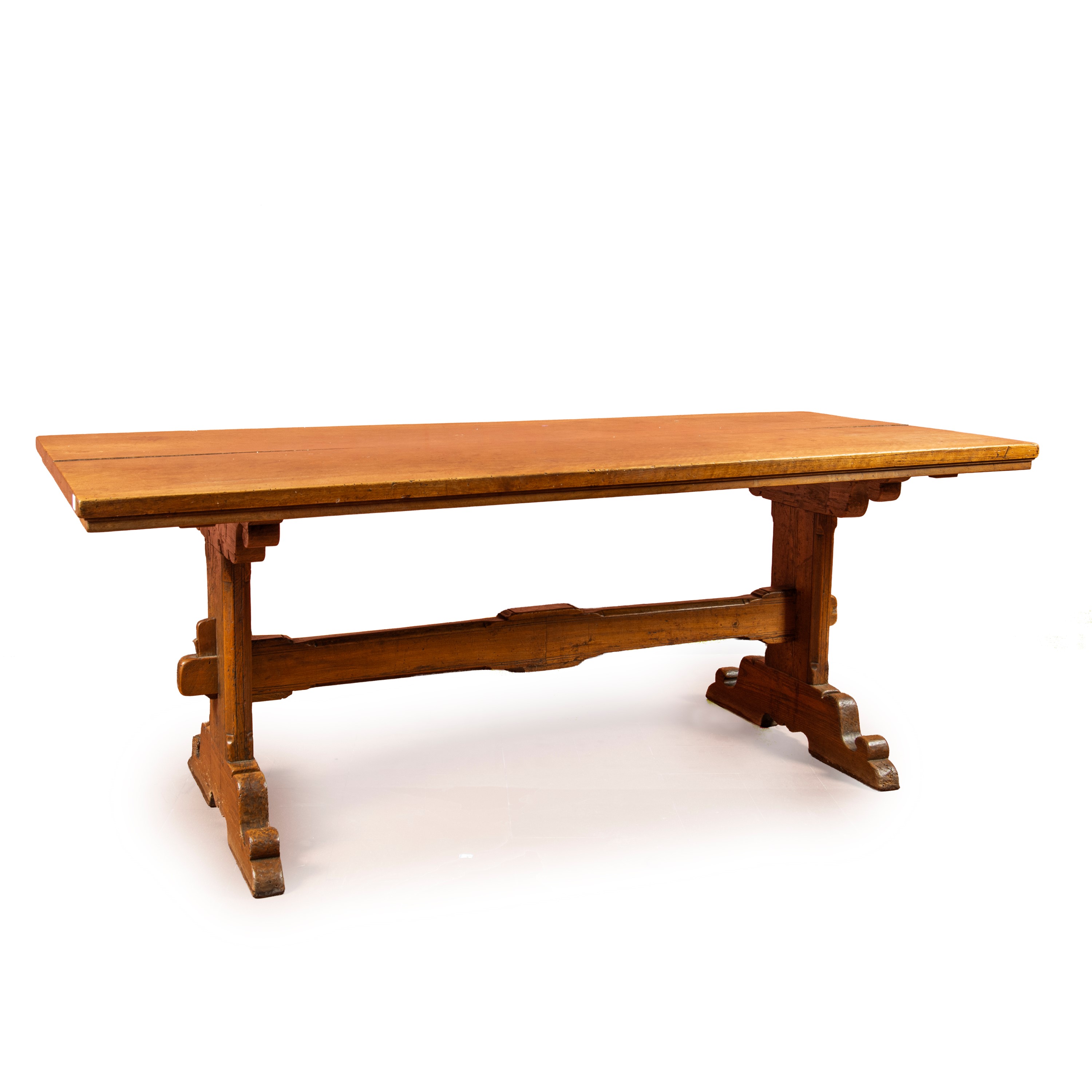 in noce, gambe a colonna riunite da traversa, cm L207xP87xH78