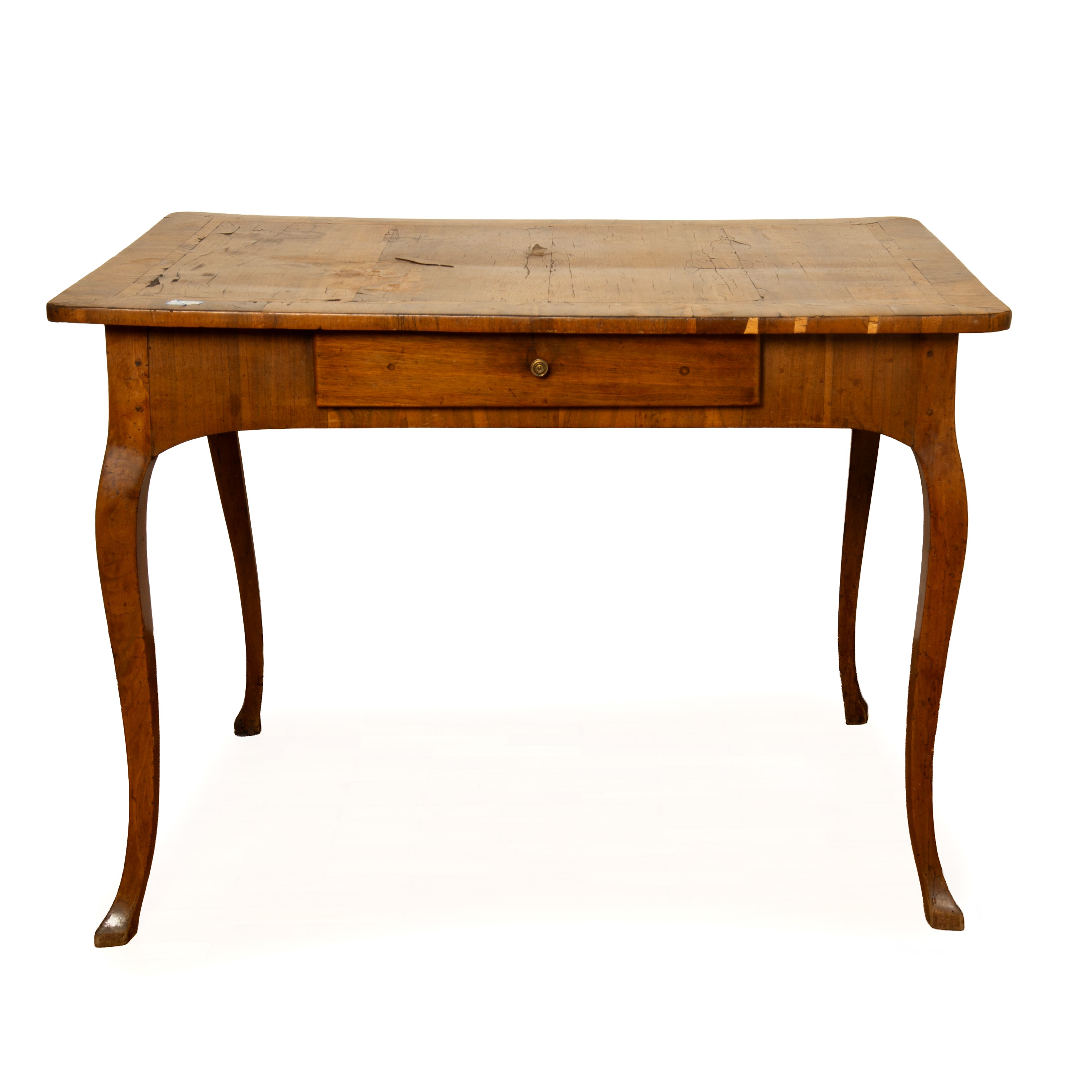 in noce ad un cassetto, gambe mosse piano filettato, cm L106xP75xH75