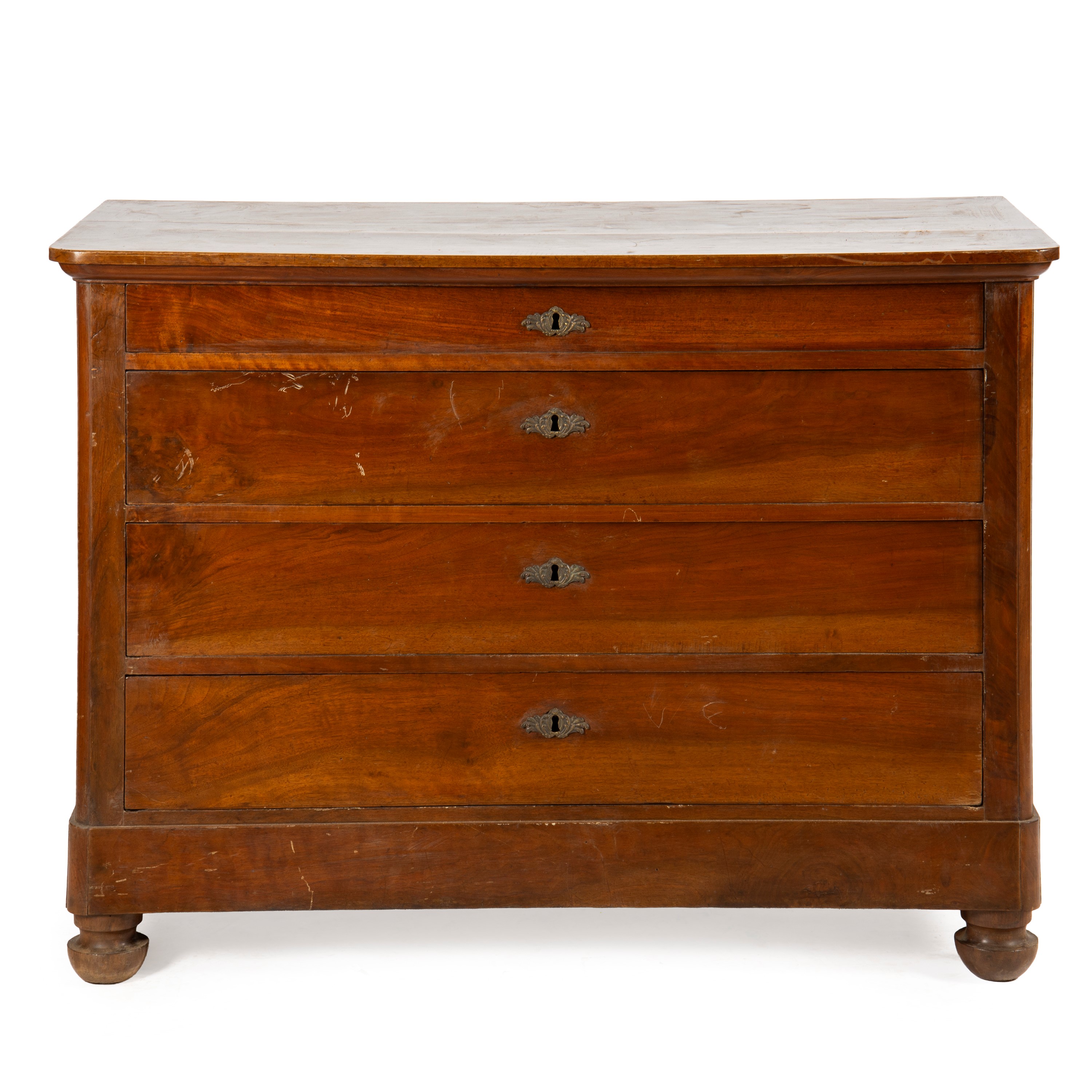 in noce a quattro cassetti, piedi a cipolla, cm L122,5xP59xH88,5