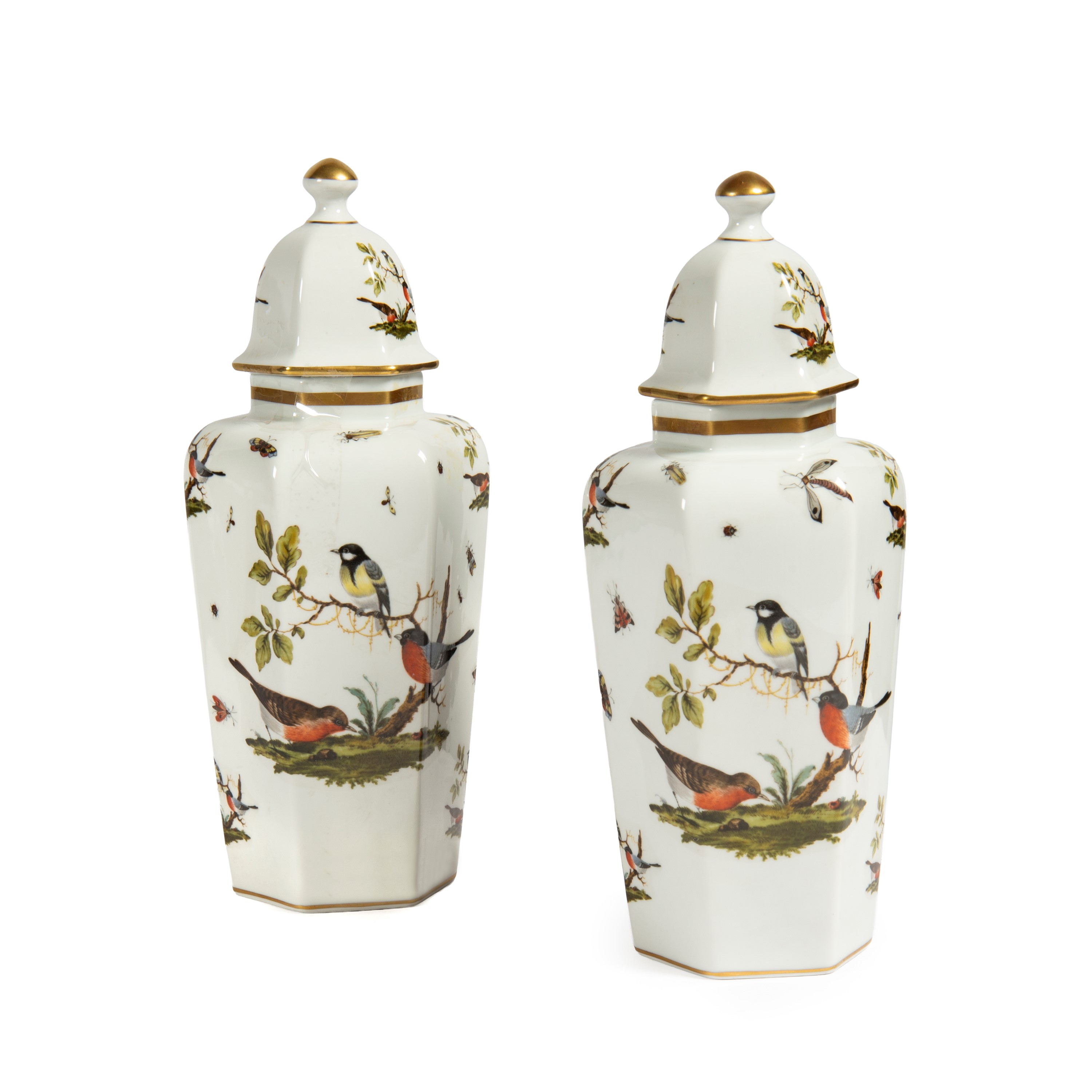 Coppia di potiche con coperchio, manifattura Capodimonte, sec. XX