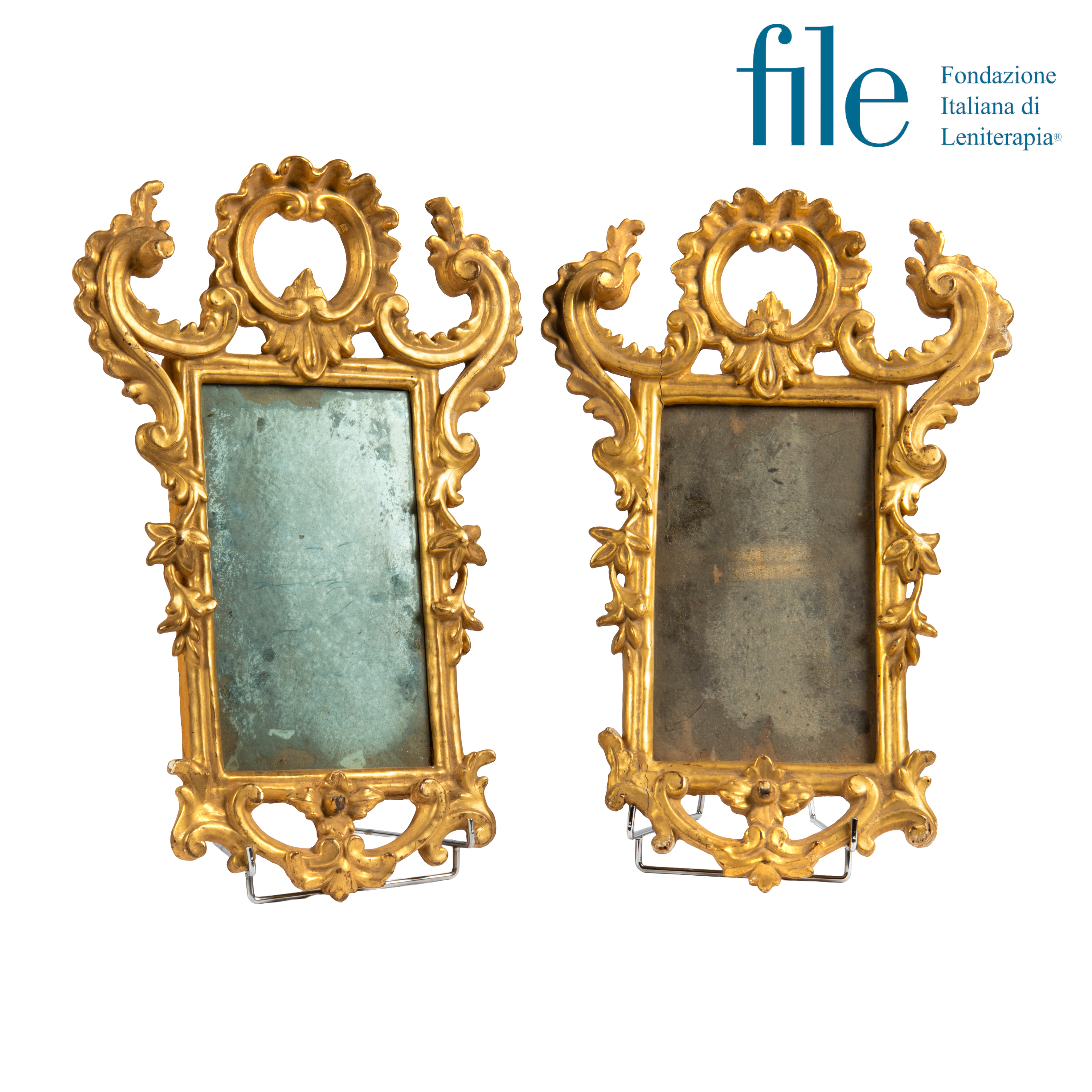 in legno dorato e intagliato, con cimasa traforata, cm 34x53