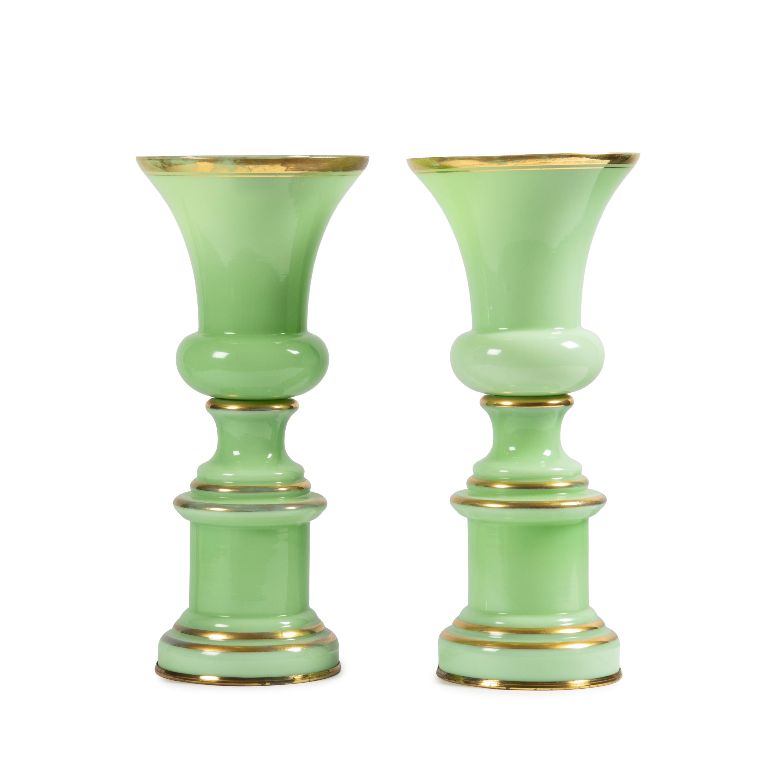 in vetro nei toni del verde con bordure oro, a guisa di coppa, completi di applicazione elettrica, alt. cm 48