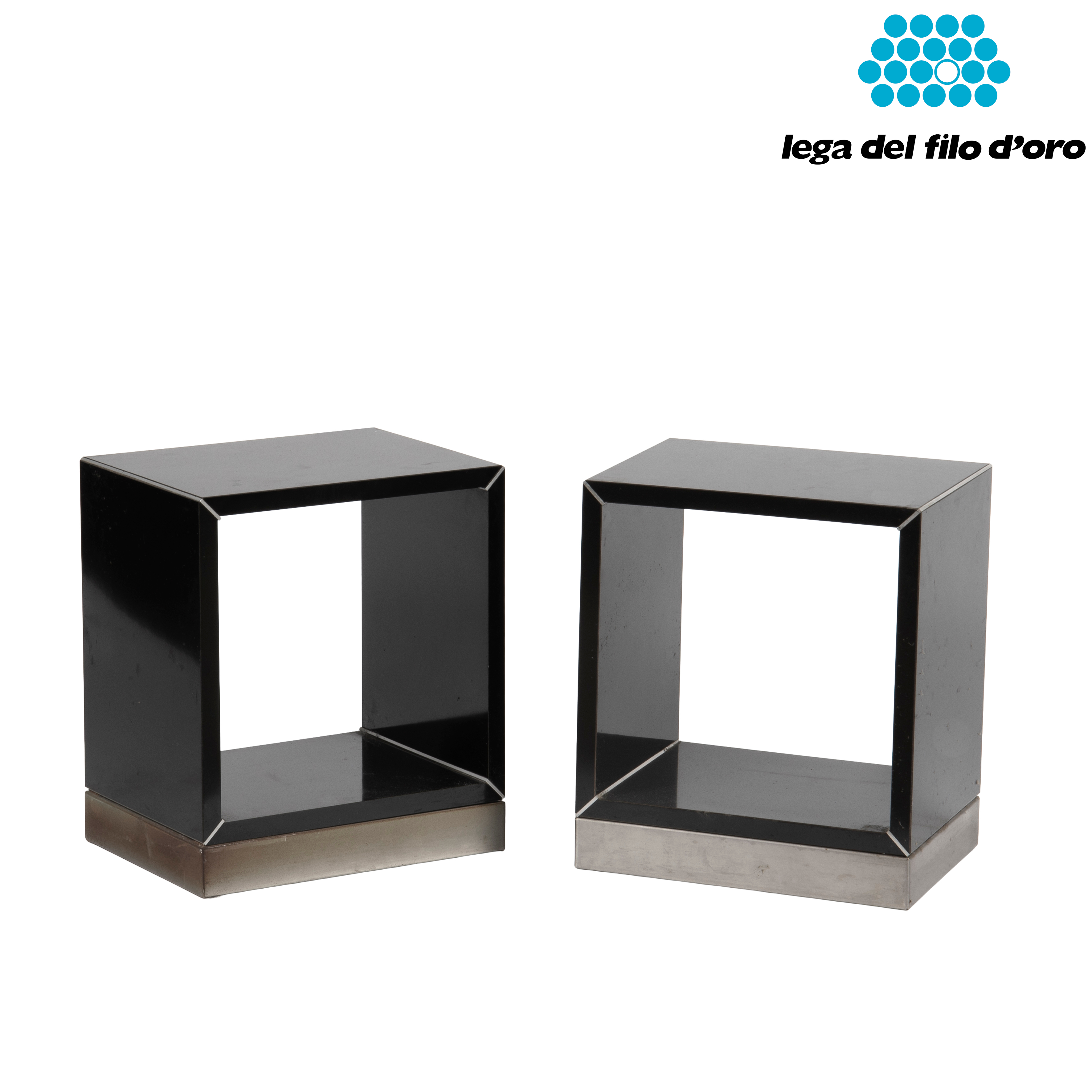 in legno laccato e acciaio, con vano a giorno, cm L40xP30xH46