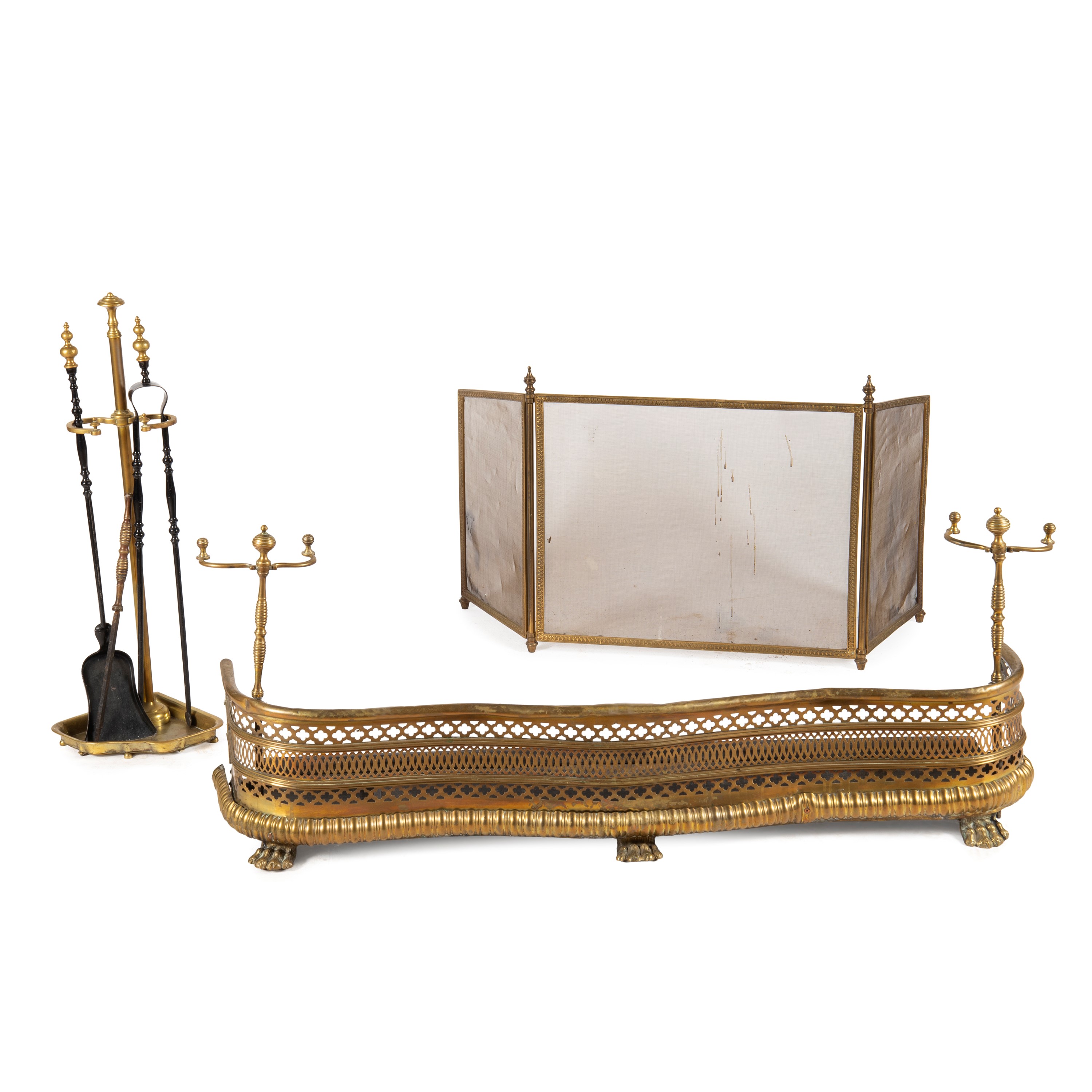 in metallo e ottone dorato, parascintille cm L114xP30xH50 e cm L57xH52 attrezzi alt. cm 70