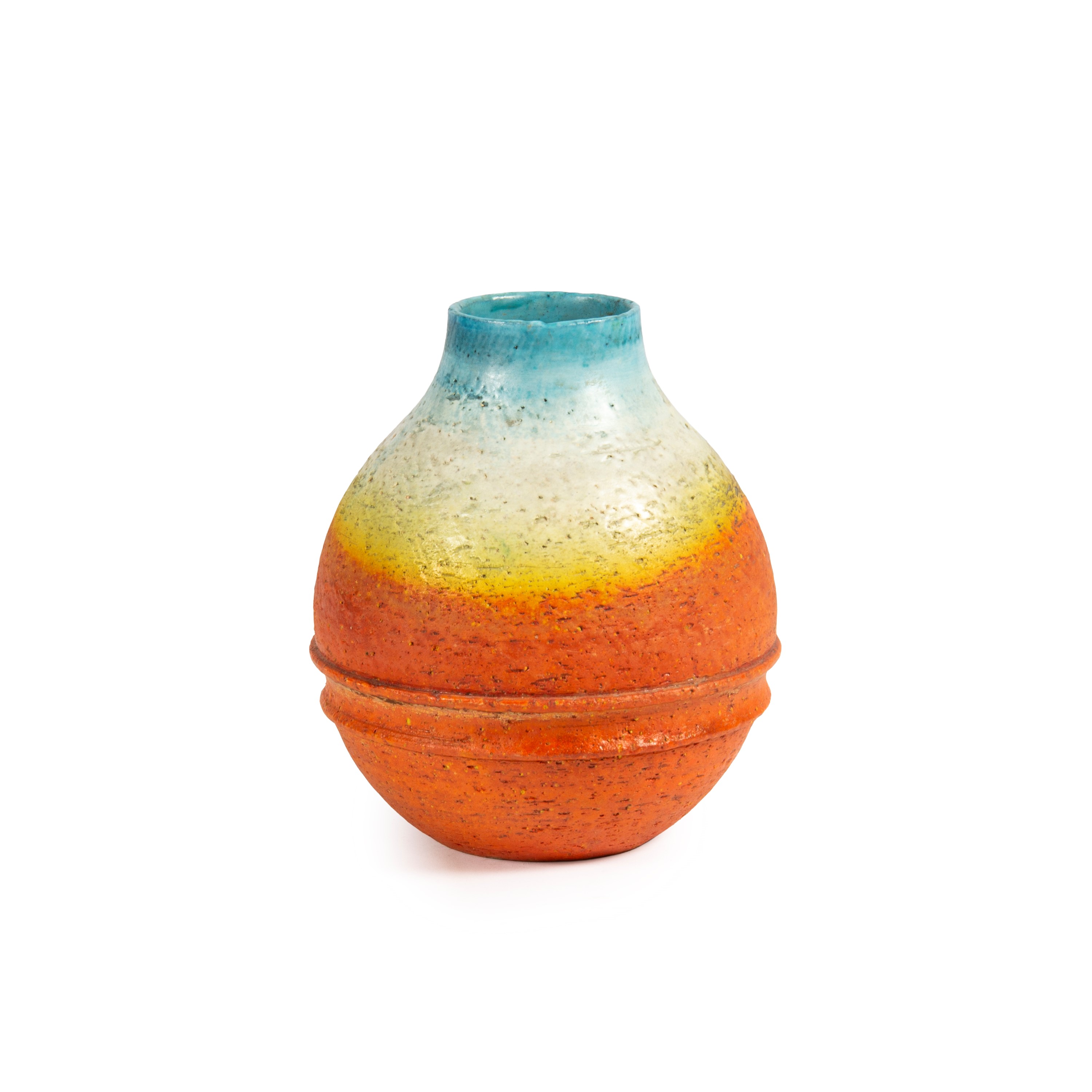 in terracotta smaltata, firmato sul fondo, diam. cm 14 alt. cm 18