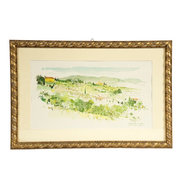 due acquerelli su carta, firmati e datati in basso, cm 18,5x30,5 e cm 25x45