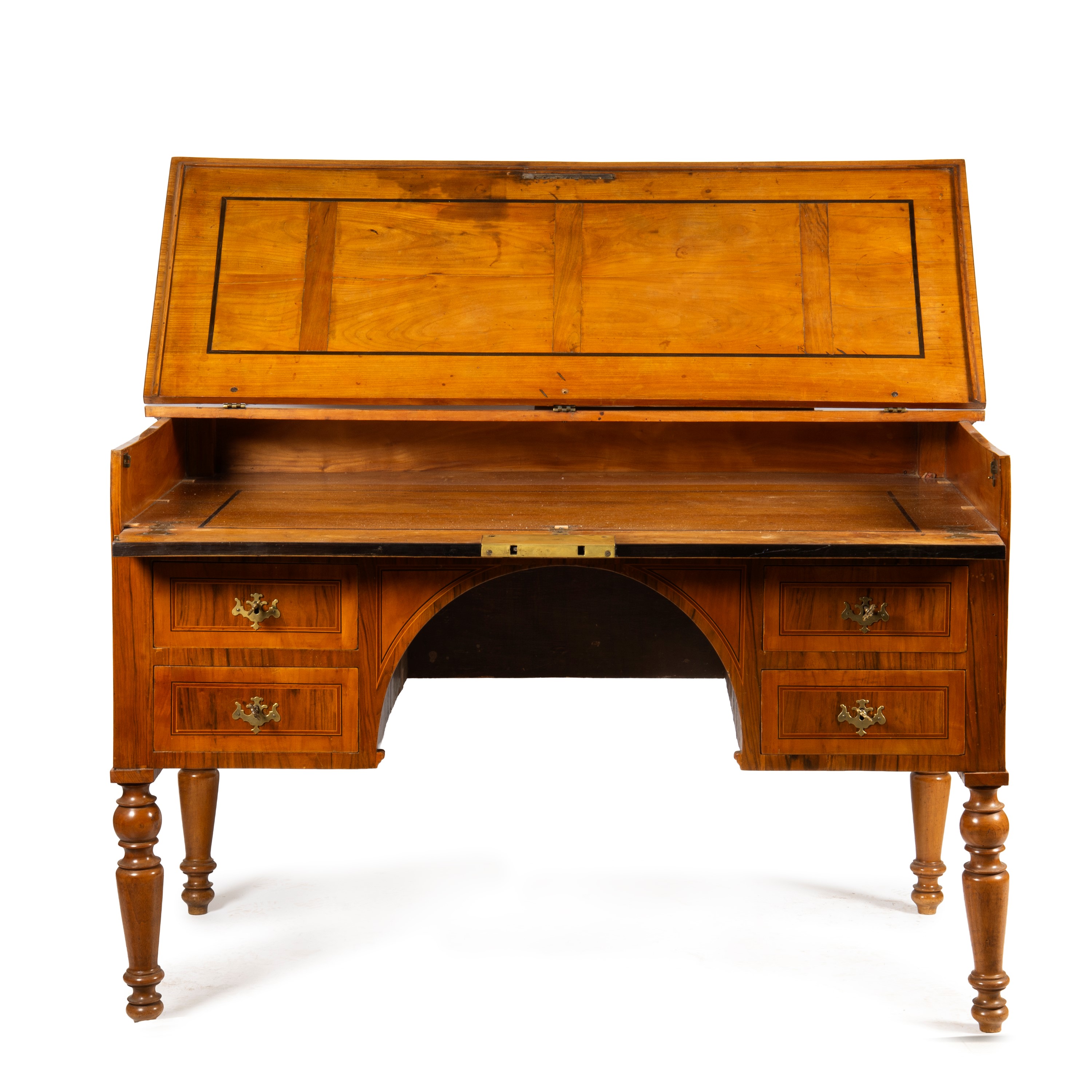 in noce filettato a quattro cassetti, piano da alzarsi con scarabattolo, cm L146xP87xH95,5