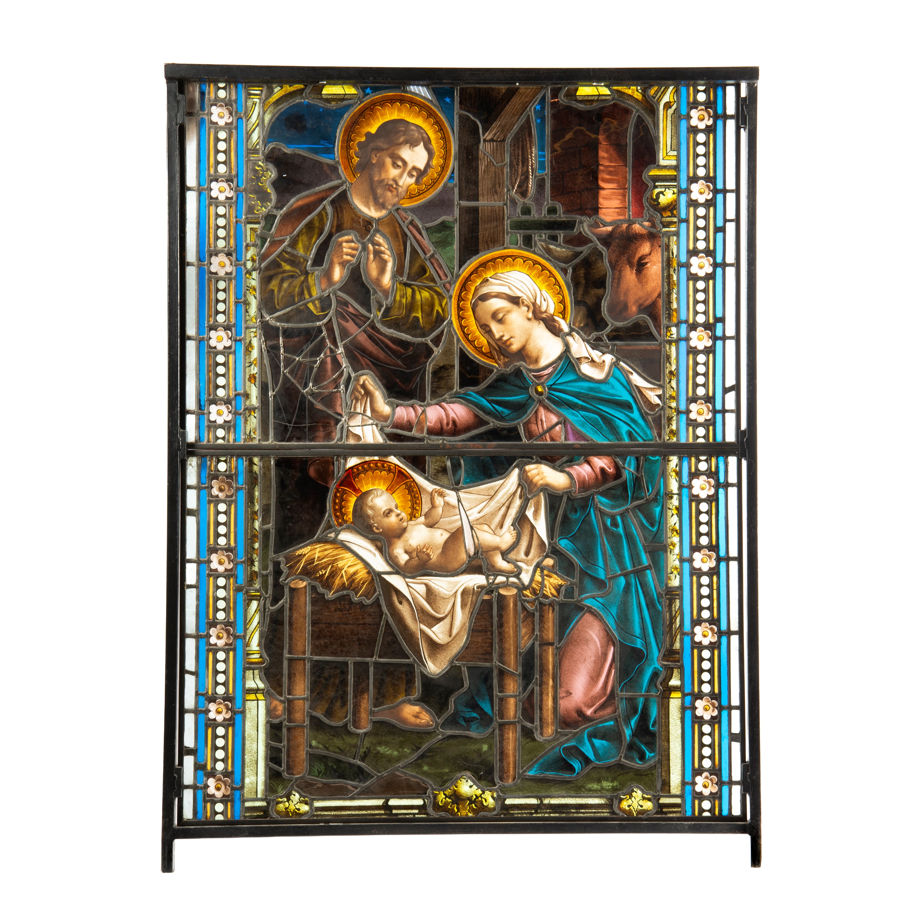 su vetro piombato, entro cornice in metallo, cm 104x140