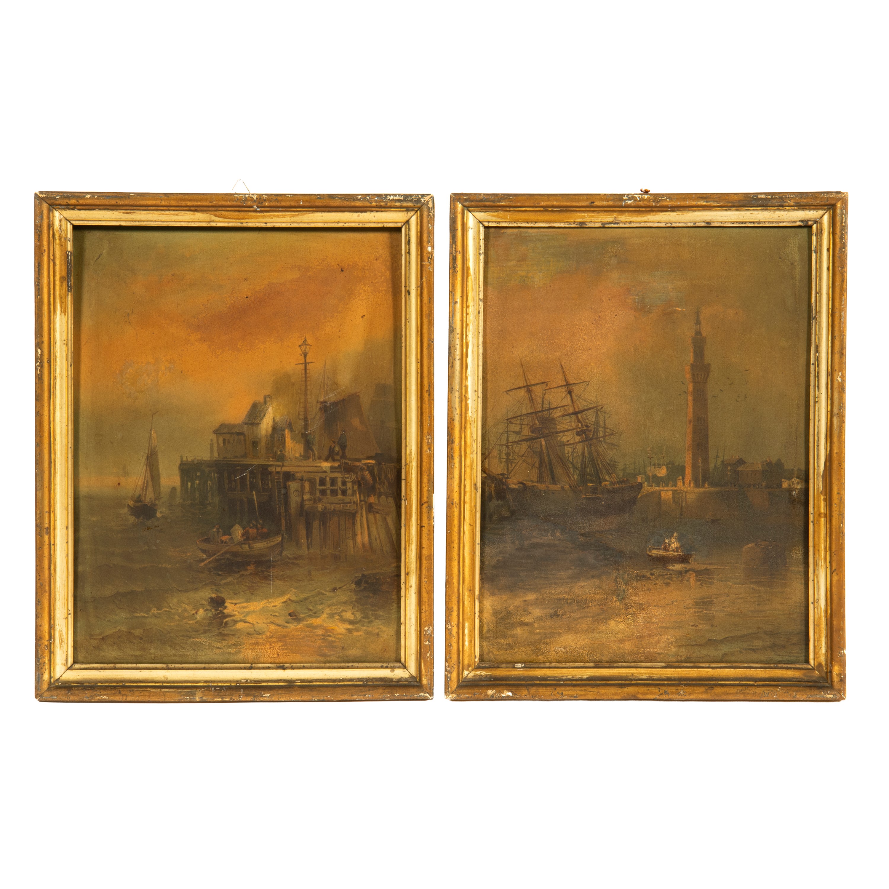 coppia di dipinti ad olio su cartone, cm 41x31