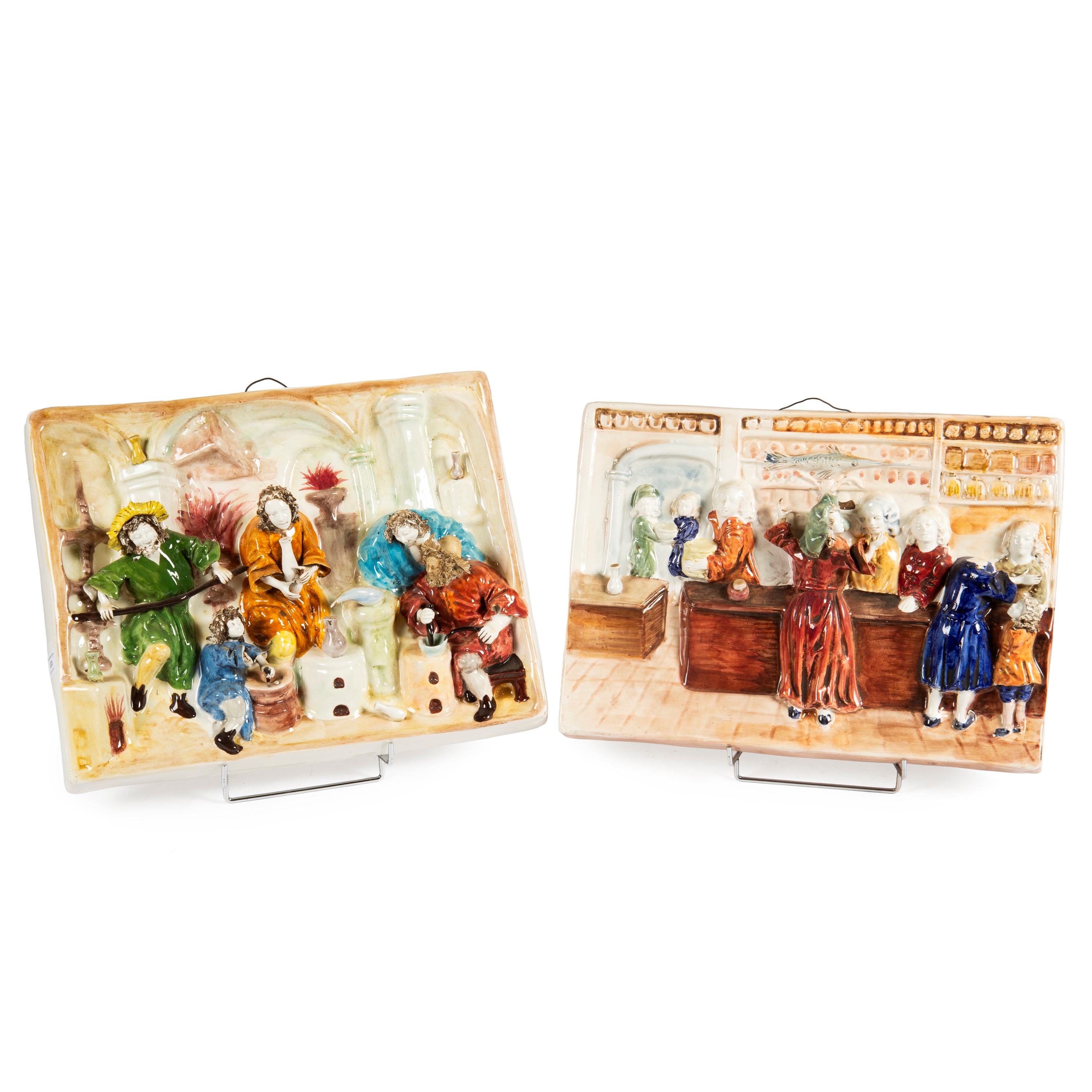 due altorilievi in ceramica, cm 34x46 e cm 36x45