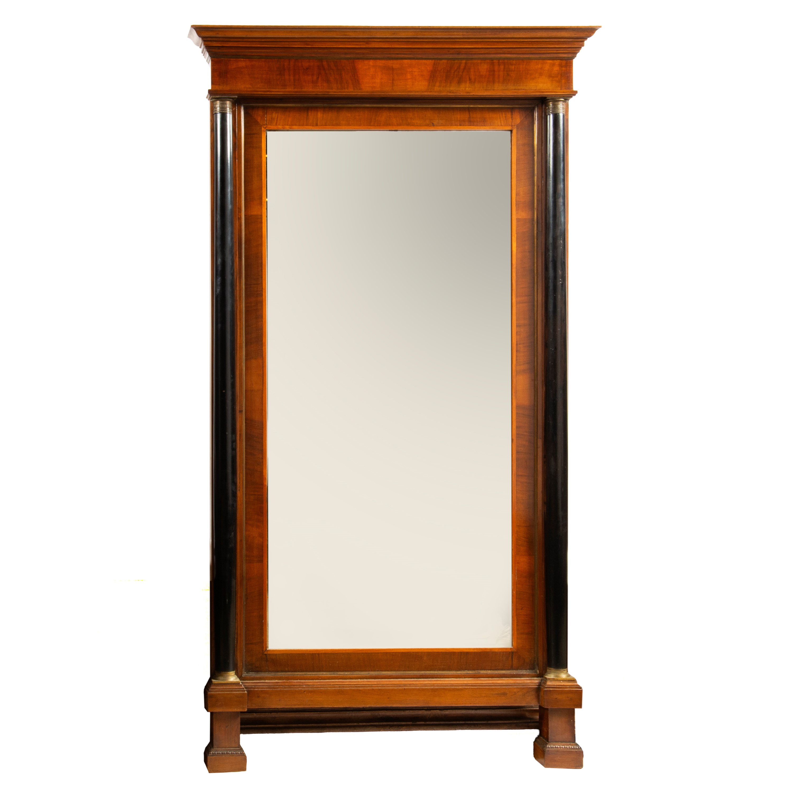 in noce con laterali a mezze colonne ebanizzate, rapporti in metallo dorato, cm L111xP14xH199