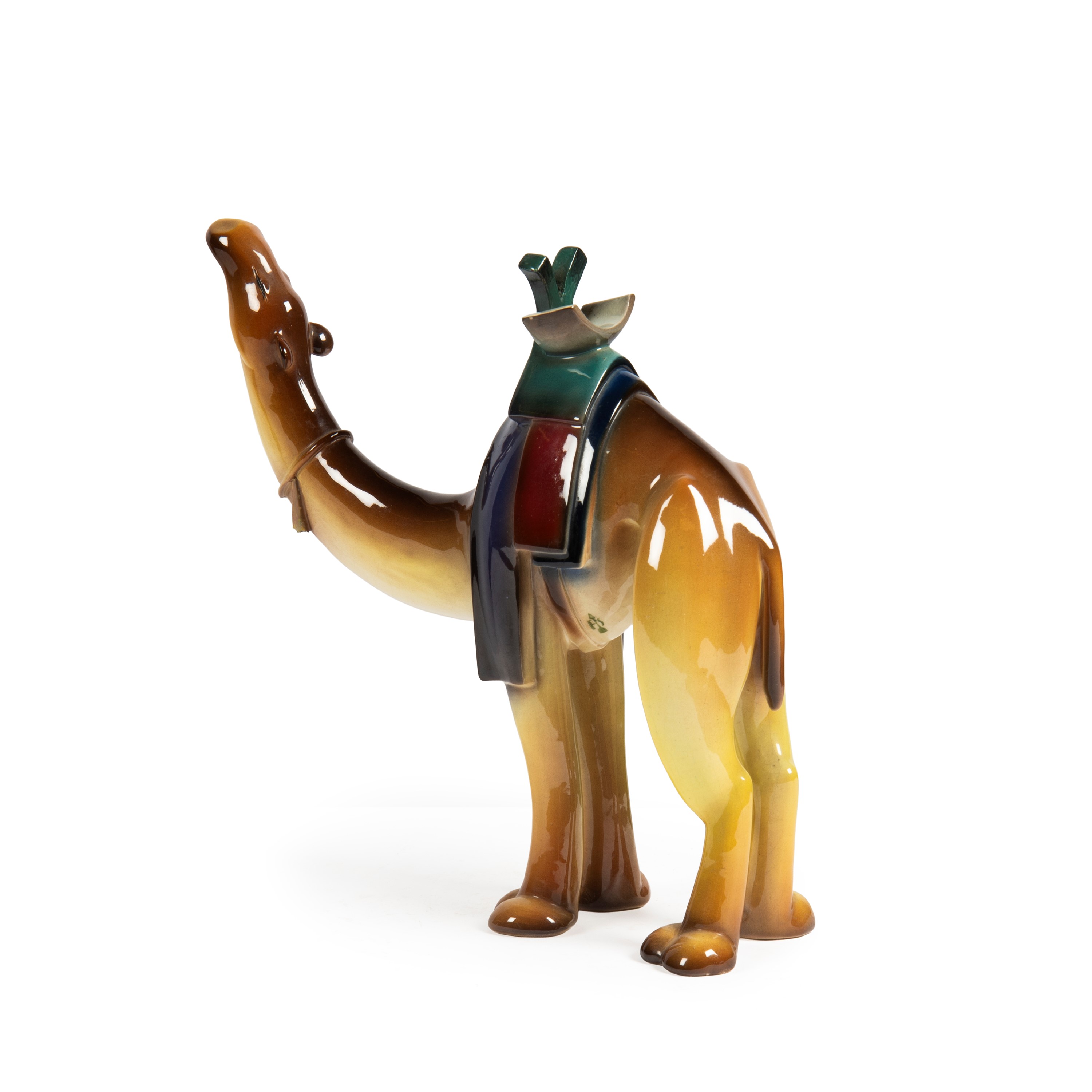 scultura in ceramica policroma, marchio sul fondo, cm 26x24